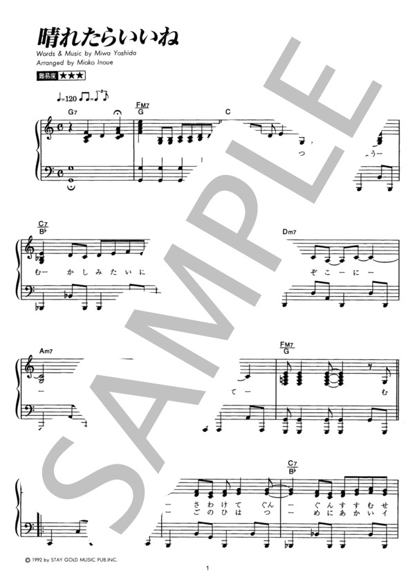 楽譜 晴れたらいいね Dreams Come True メロディ譜 全音楽譜出版社 楽譜 Elise